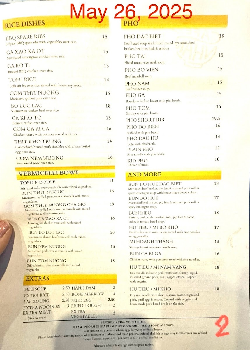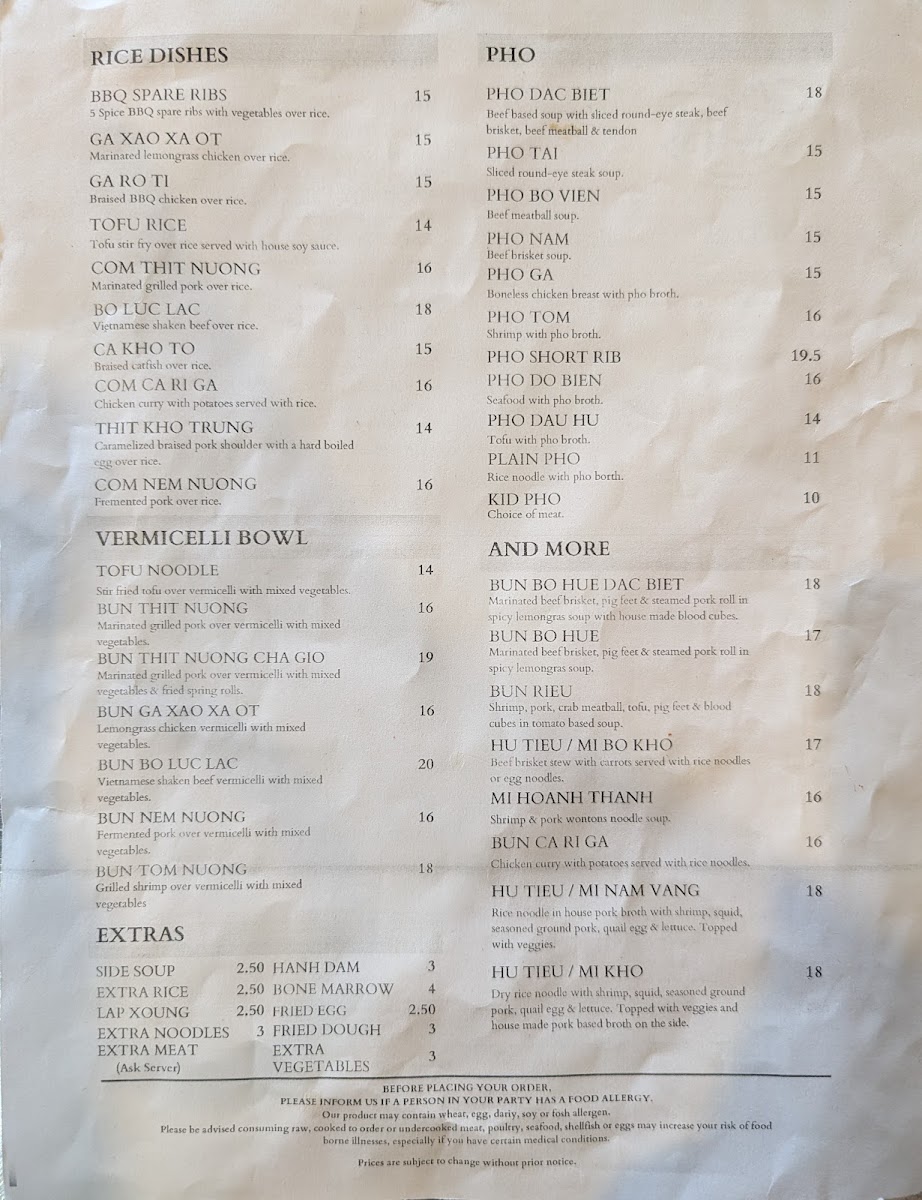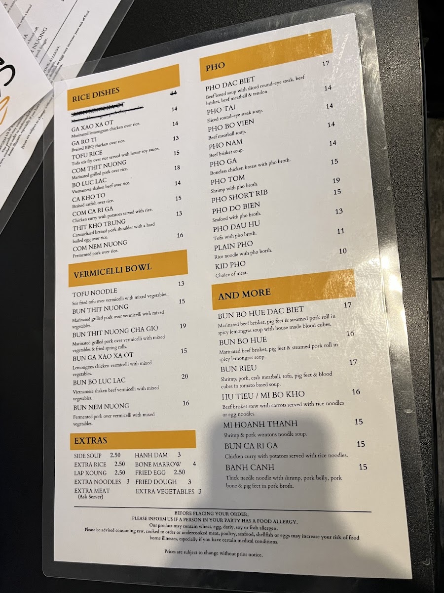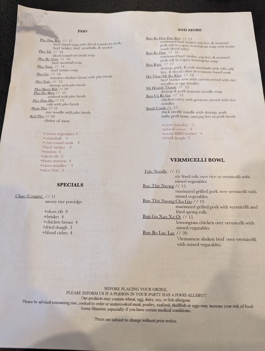 marinated beef brisket, pig feet, steamed pork roll and housemade blood cubes in a spicy lemongrass soup